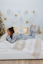 Our fair isle blanket (60x80) brings timeless holiday charm to your home in the dreamiest neutral tones. Featuring a cozy winter pattern of bows, snowflakes, and trees, this ultra-soft favorite adds a touch of golden magic to any room. It’s the perfect layer for cozy mornings by the fire, movie nights in bed, or gifting to someone who loves a soft, elevated holiday look! ✨