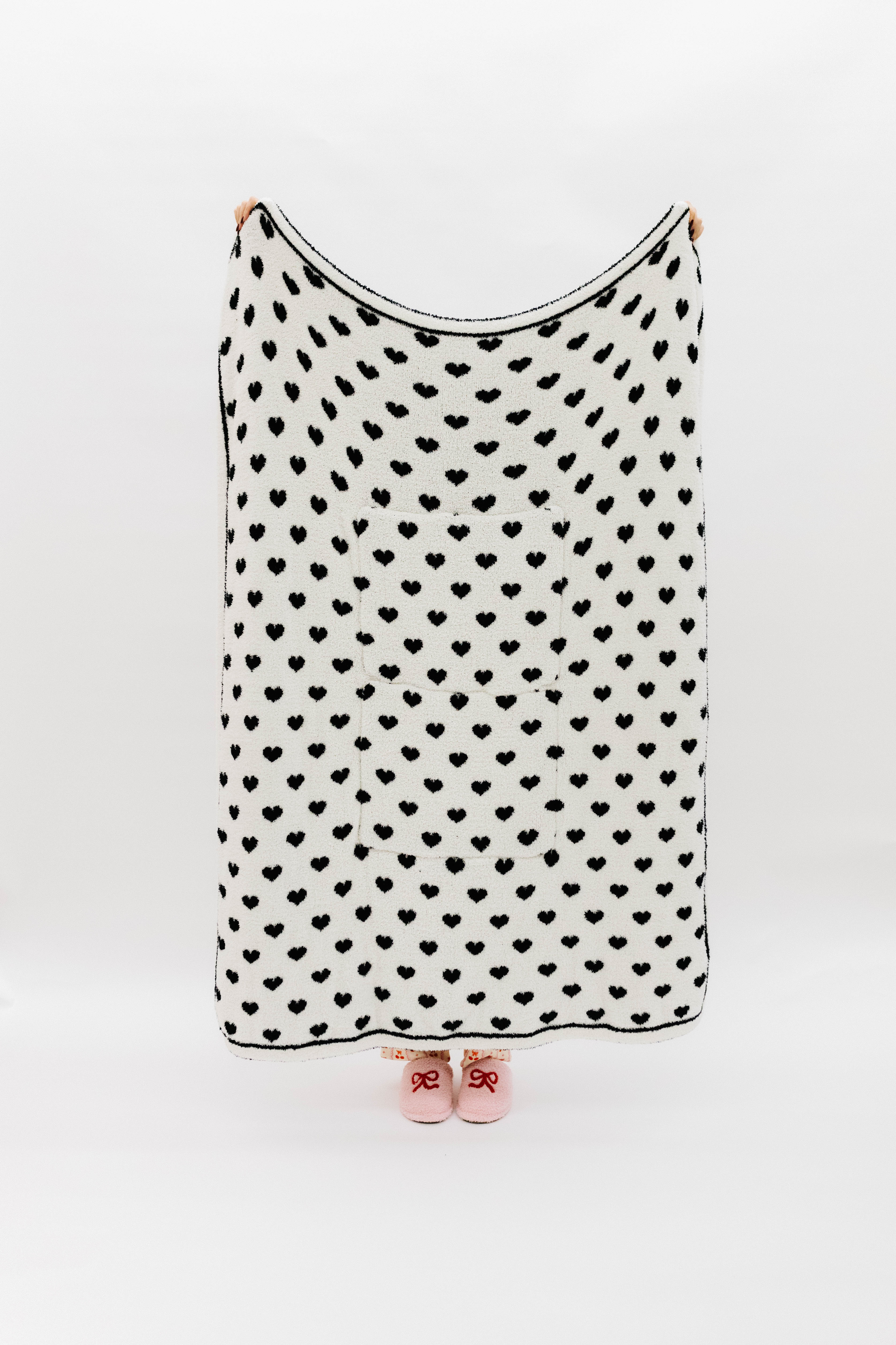 Our Black & White Heart Quillow (50×60) flips from a plush blanket to a pillow in seconds and brings a timeless, elevated look to your cozy lineup. The bold heart pattern makes a statement while still being soft enough for movie nights, lounging, and slow mornings at home. It’s the kind of cozy that looks just as good styled on your couch as it feels wrapped around you.